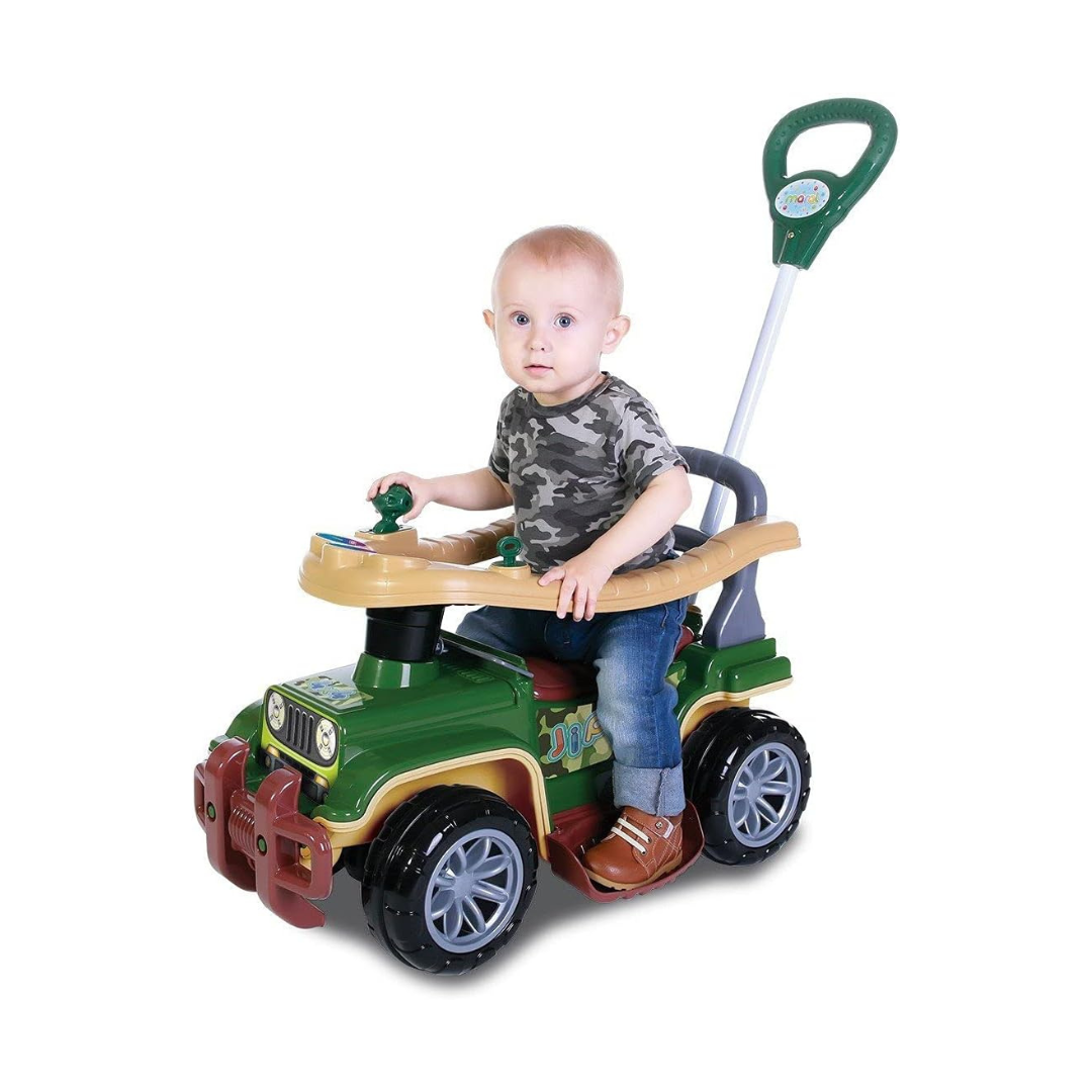 Carrinho de Passeio Jipe, Quadriciclo Infantil, Menino, com Haste, Veiculo Andador para Criança e Bebê, Maral, Jip Jip Verde Militar